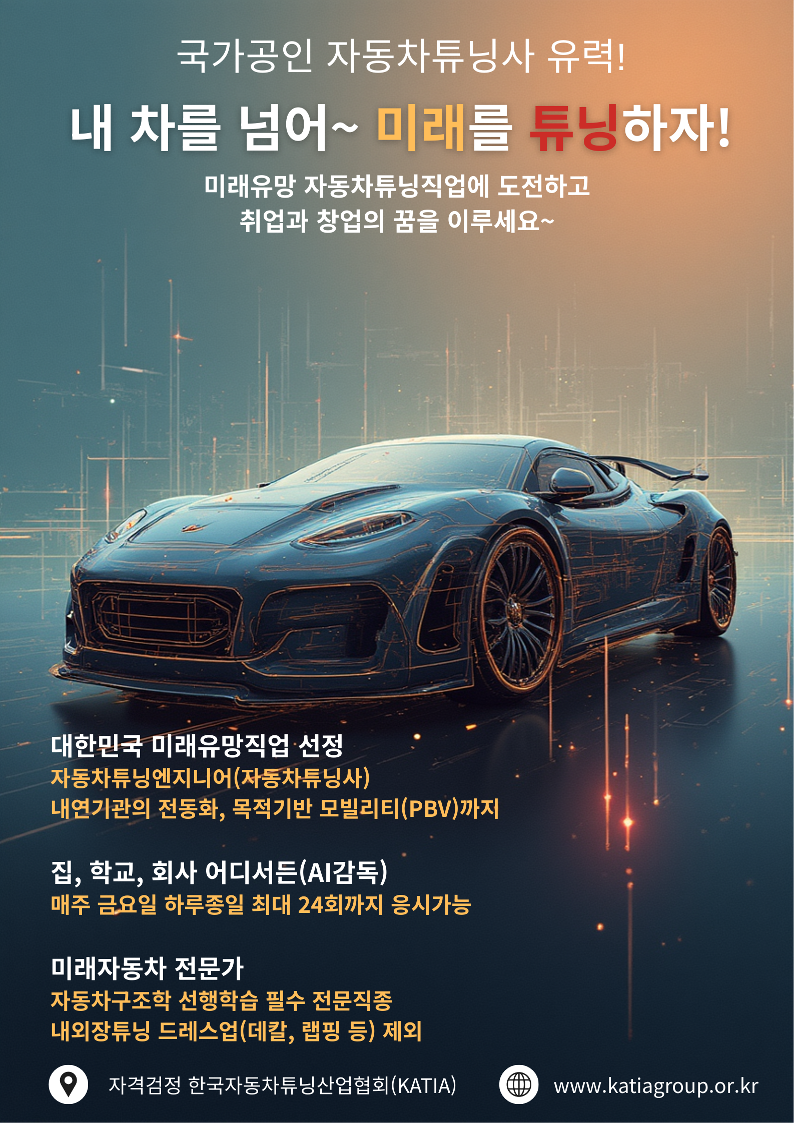-검증된 커리어: 한국자동차튜닝산업협회가 보증하는 자격증으로 취업과 창업의 문을 여세요.